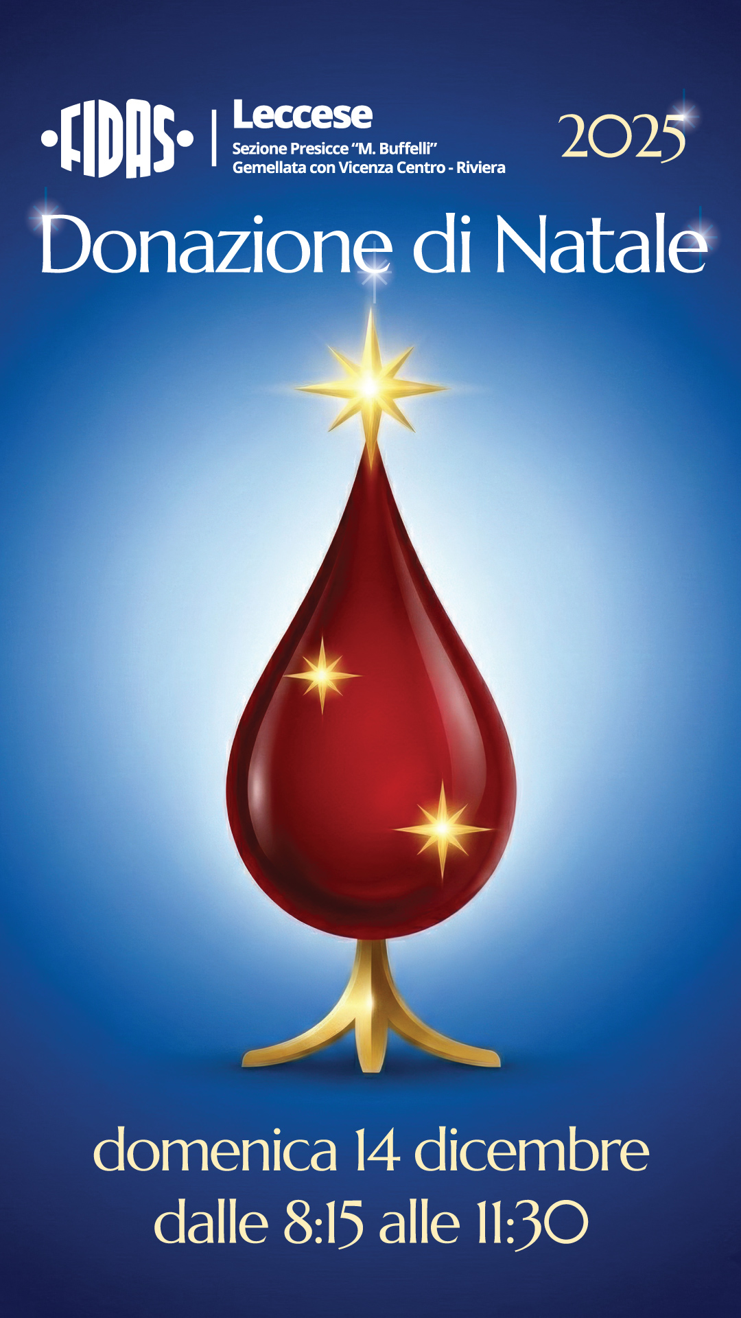 Giornata di donazione in sedeDOMENICA 14 DICEMBRE dalle 8:15 alle 11:30