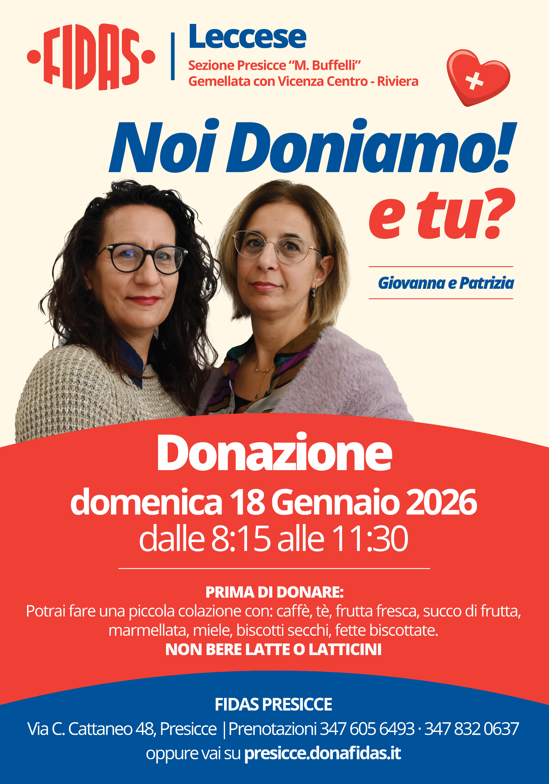 PRESICCE- FIDAS Leccese – Prenota la tua donazione