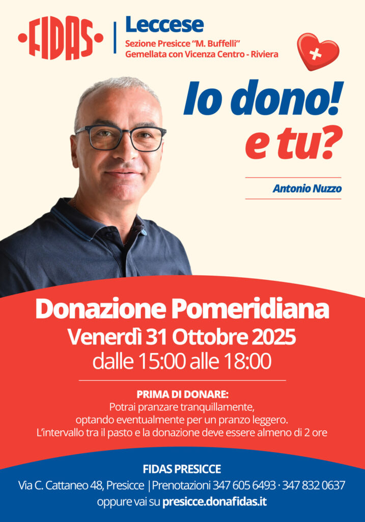PRESICCE- FIDAS Leccese – Prenota la tua donazione